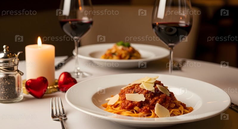 Романтический ужин с красным вином и свечами в День святого Валентина