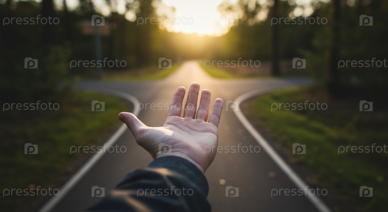 Рука, протянутая вперед на пересечении дорог, символизирует выбор и решение