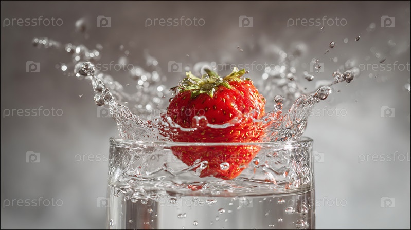 Спрей клубники в стакан с водой