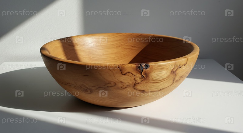 Красивая деревянная ручная чаша с натуральным древесным зерном и ярким солнечным светом