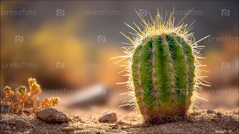 Кактусы из тернистой пустыни, купающиеся в теплом свете
