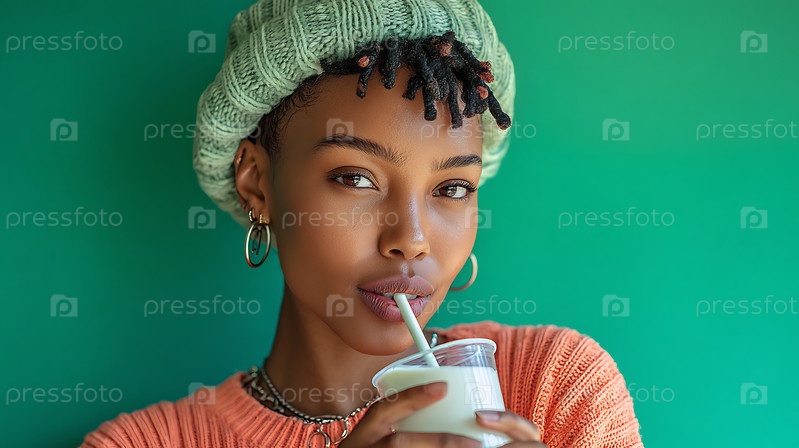 Женщина пьет напиток со сломкой, ближайший снимок