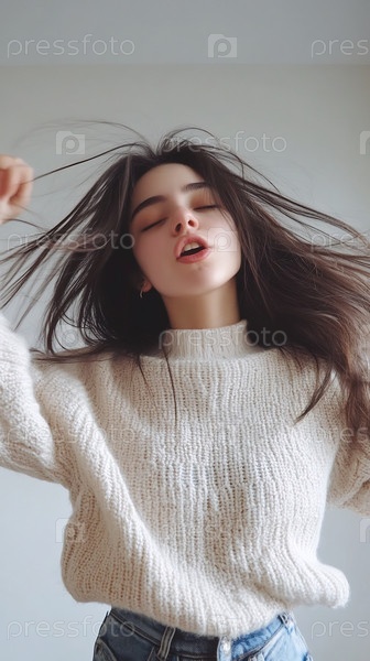 Потрясающе красивая и привлекательная девушка танцует и веселится дома