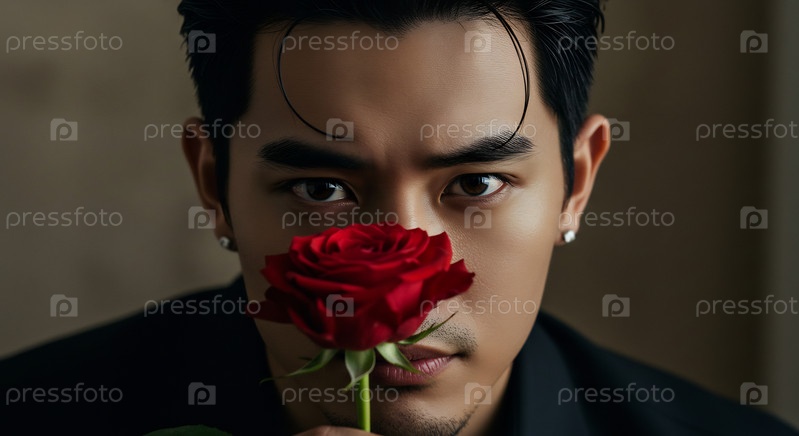 Красивая и привлекательная азиатка с красной розой