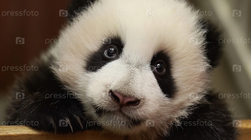 Портрет очаровательной маленькой панды с черно-белым мехом, смотрящей прямо