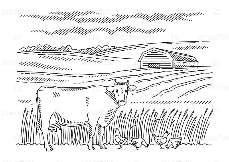 Сельский пейзаж, корова в поле