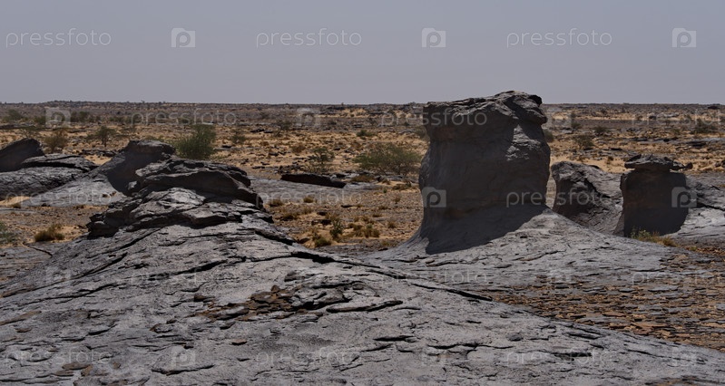 Гигантские обломки вулканических пород на скалистом плато природного парка Агрор на юго-западном краю пустыни Сахара