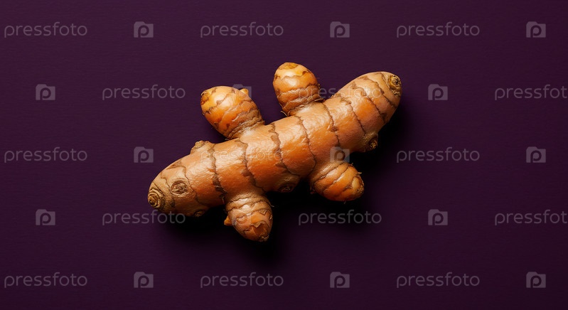 Свежая куркума на фиолетовом фоне
