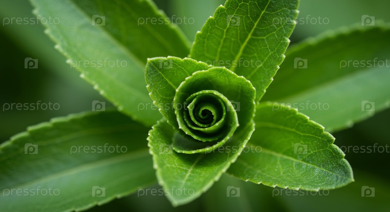 Ярко-зеленые листья растений образуют спираль