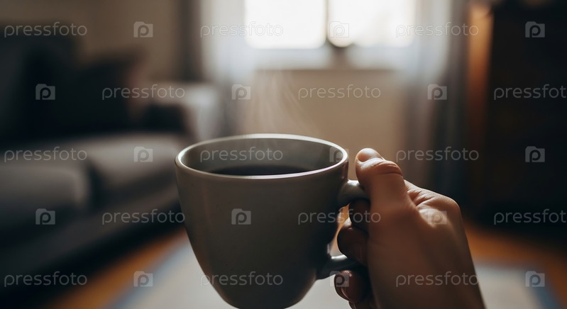 Руки держат возвышающуюся чашку кофе в помещении
