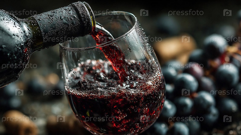 Охлажденное красное вино наливается в влажный стакан