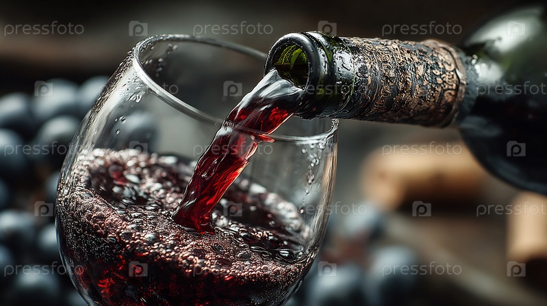 Красное вино из бутылки в стакан