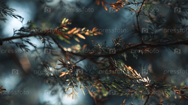 Естественные ветви растений под теплым светом