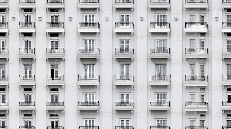 Белый современный фасад здания с балконами