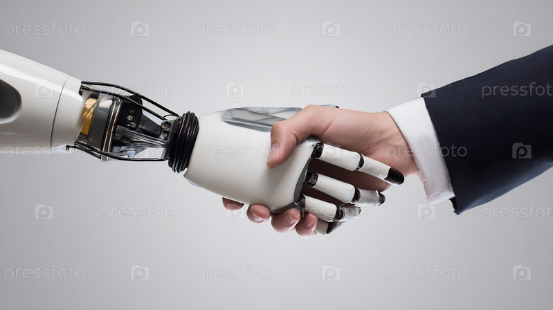 Рукопожатие человека и робота, будущее ИИ