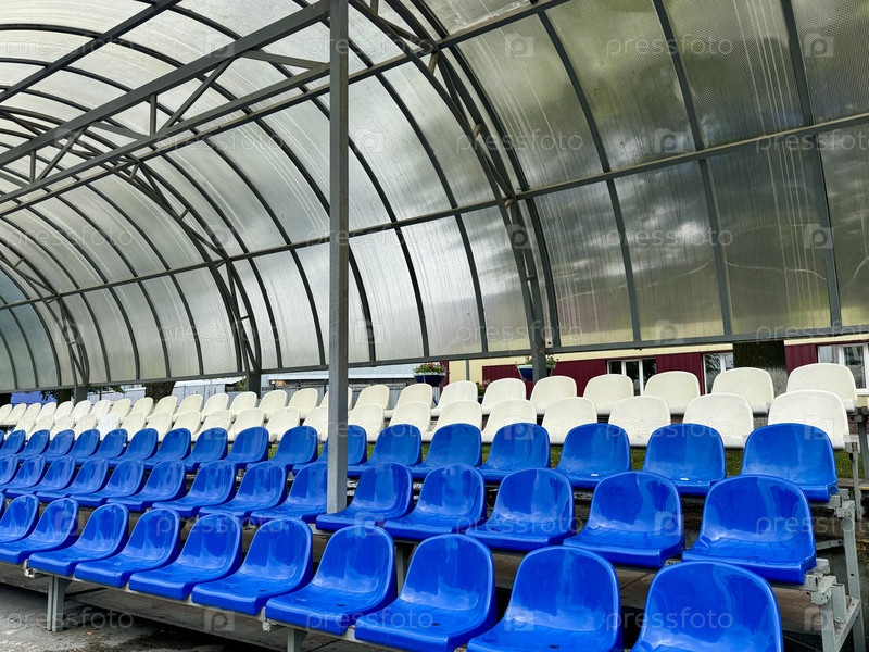 Трибуна с синими местами на спортивном стадионе