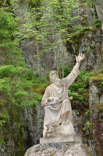 Жанровая скульптура в поместье Монрепо во Выборге: полубог Вайнемайнен (Väinämeinen), играющий кантель, герой эпического Калевала