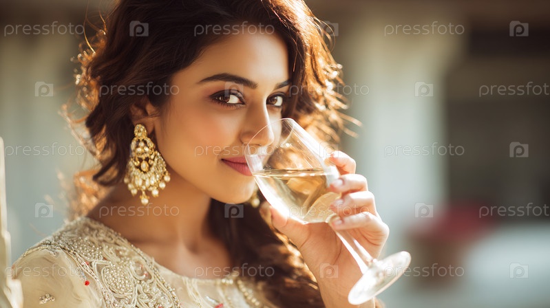Красивая женщина наслаждается бокалом белого вина