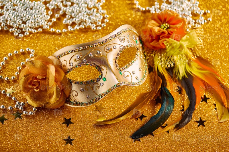 Праздничная, красочная Марди Гра или карнавальная маска на золотом фоне