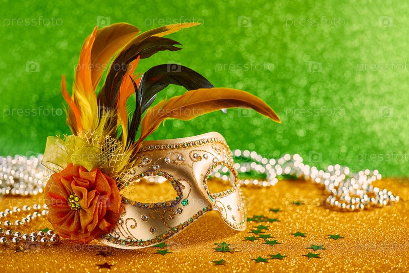 Праздничная, красочная Марди Гра или карнавальная маска на золотом фоне