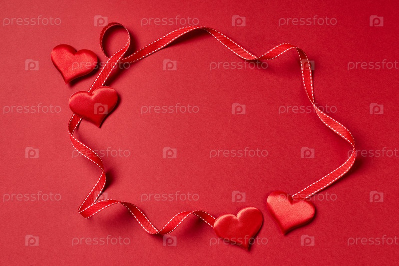 День святого Валентина Сердце и лента на красном фоне