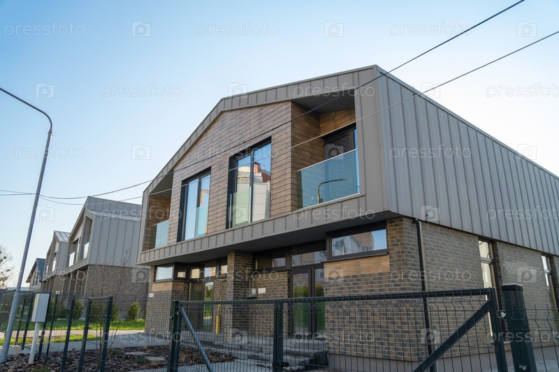 Современный таунхаус с закрытым двором и мощеной дорожкой, доступной через черные металлические вращающиеся ворота.Идеально подходит для семейного проживания и безопасной парковки