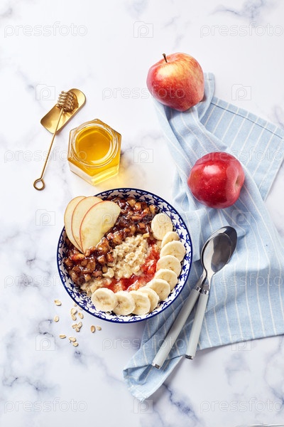 Домашняя овсяная каша на завтрак с яблоком, корицей и медом