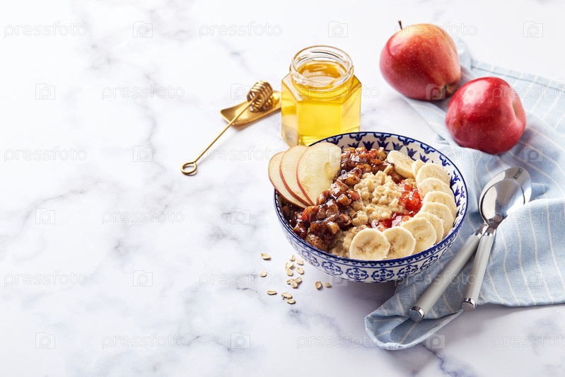 Домашняя овсяная каша на завтрак с яблоком, корицей и медом