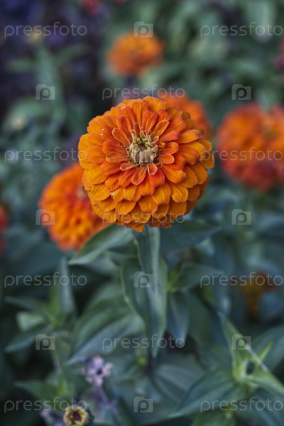 Цветок оранжевой зинии в саду