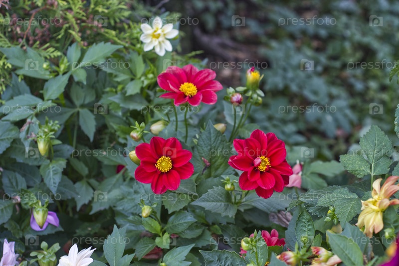 Красочные цветы даллии в саду