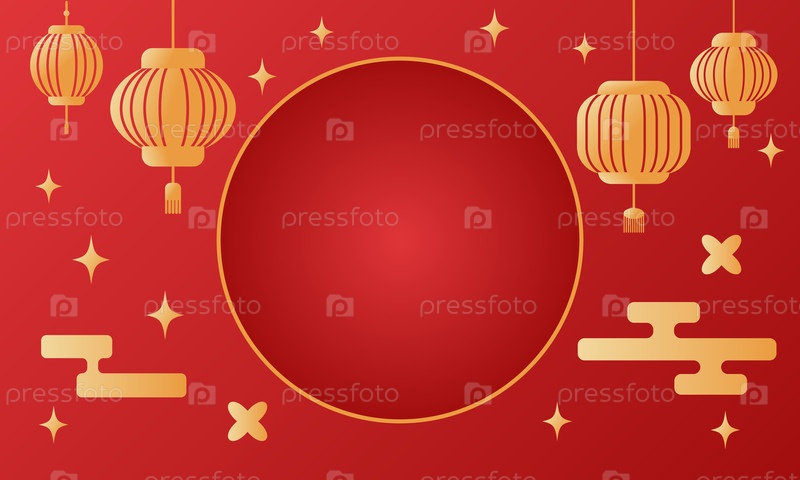 Китайский праздничный баннер Нового года с золотыми фонарями и звездами