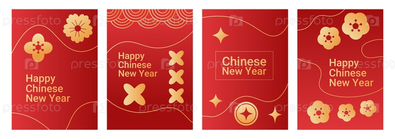 Новогодний плакат с китайским красным и золотым цветочным дизайном