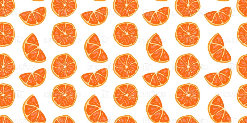 Яркий бесшовный рисунок с рукописными нарезами апельсина на белом фоне для летнего дизайна