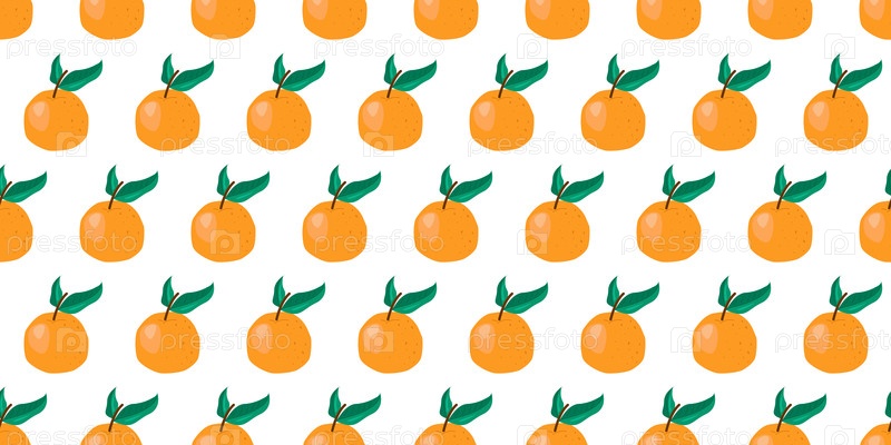 Бесшовный рисунок с яркими апельсинами со зелёными листьями на белом фоне, идеально подходит для свежих дизайнов