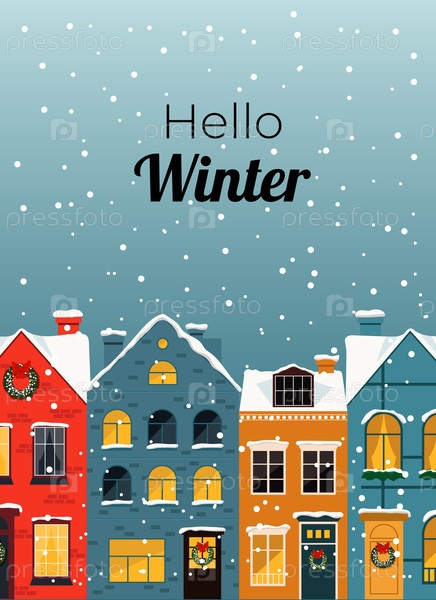 Поздравления для зимних открыток со снежинками и домами