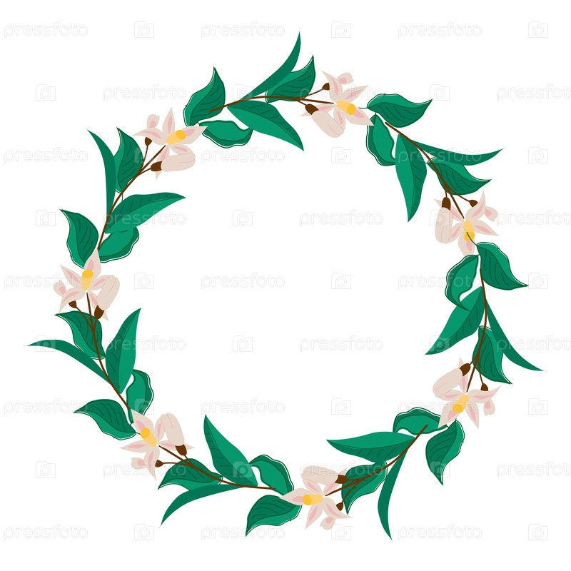 Цветочный оранжевый венок с зелеными листьями и цветами
