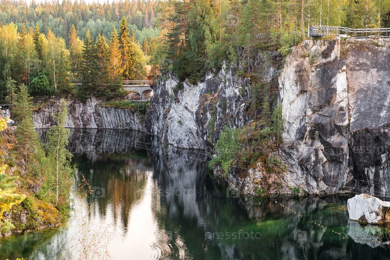 Летний пейзаж парка Рускеала. Туркуазный мраморный каньон. Россия, Республика Карелия, деревня Рускеала