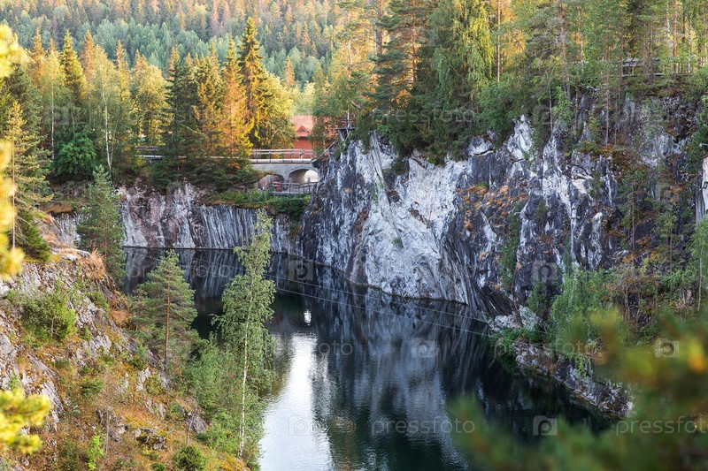 Летний пейзаж парка Рускеала. Туркуазный мраморный каньон. Россия, Республика Карелия, деревня Рускеала