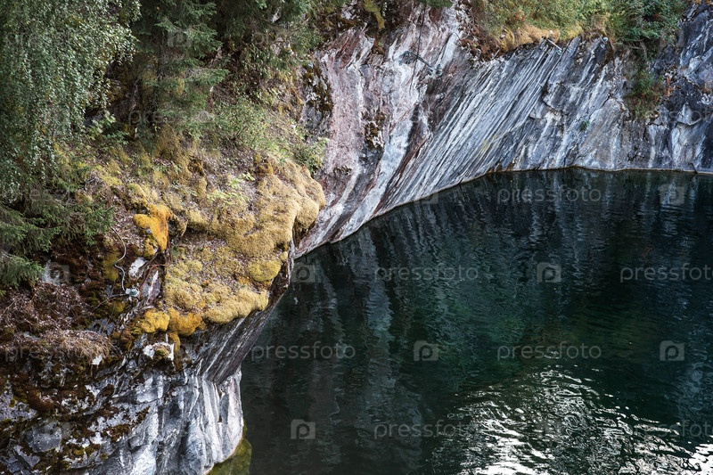 Летний пейзаж парка Рускеала. Туркуазный мраморный каньон. Россия, Республика Карелия, деревня Рускеала