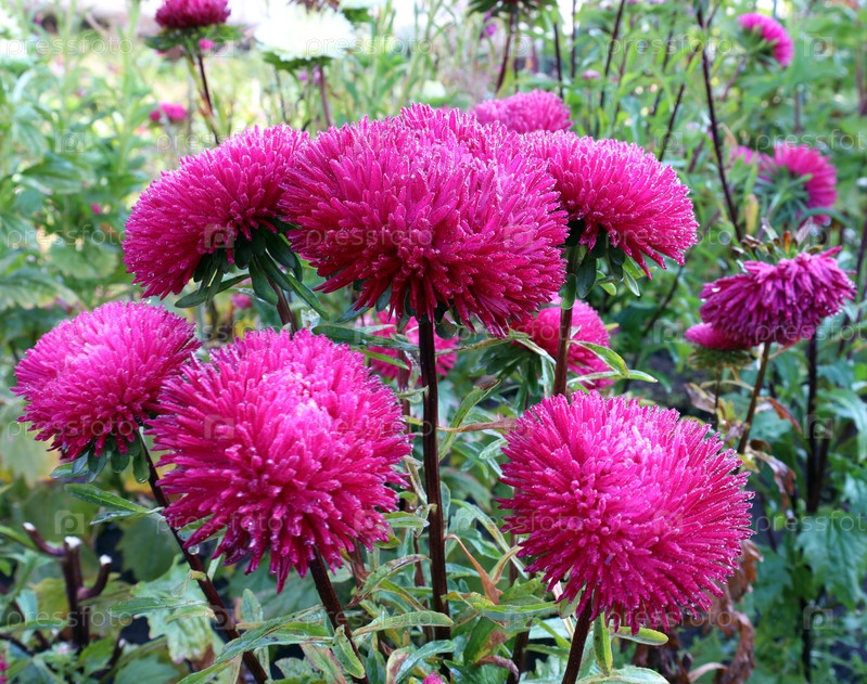 Красные Астры цветут в саду после дождя