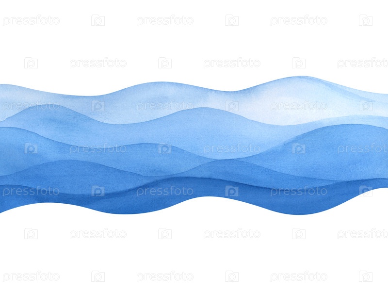 Голубые волны, нарисованные вручную. Абстрактное море. Изолированные на белом фоне акварельные иллюстрации. Клипарт