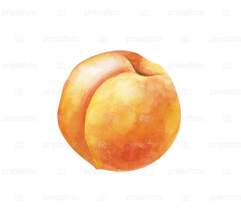 Акварель сочный персик, ручной рисунок. Изображение акварели выделено на белом фоне. Ботанический чертеж спелых фруктов. Для дизайна линий плодов и здоровой пищи
