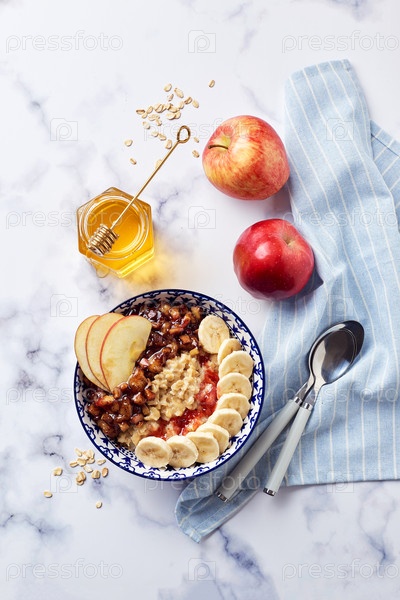 Домашняя овсяная каша на завтрак с яблоком, корицей и медом