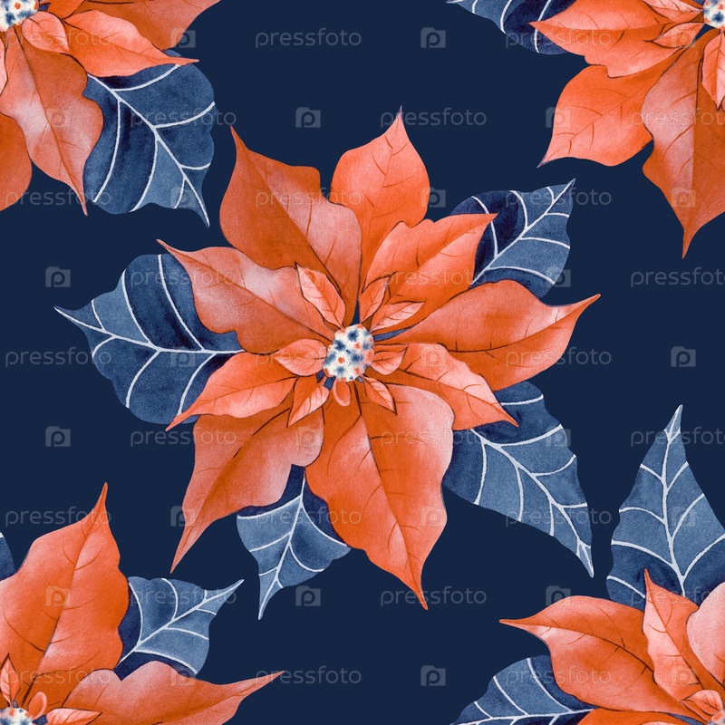Ботаническая иллюстрация традиционного праздничного цветка зимних каникул для обоев, текстиля, упаковки, посуды