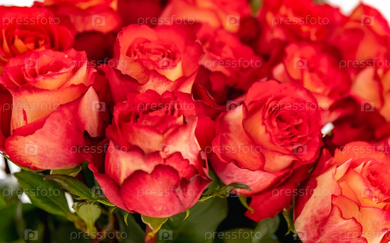 Красные и оранжевые розы в букете