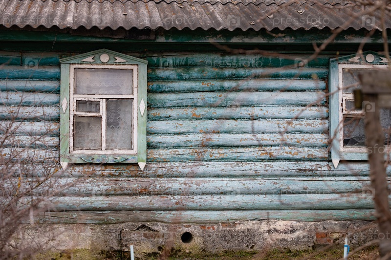 Деревянный дом с мелкой краской и окнами