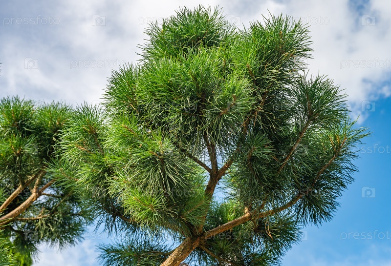 Сосновая ветвь против голубого неба
