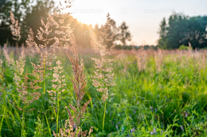 Солнечные луговые травы в спокойном ландшафте