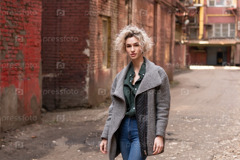 Красивая молодая женщина позирует в пальто на улице