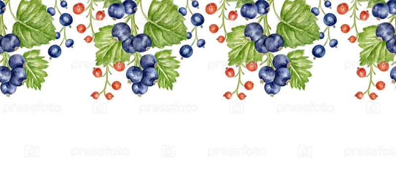 Горизонтальная граница со зрелыми красными и черными грецкими свеклами и зелеными, окрашенными в акварель